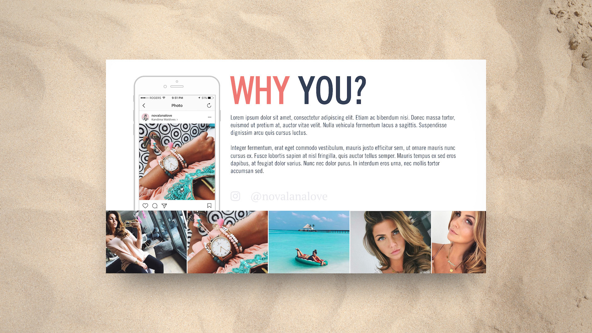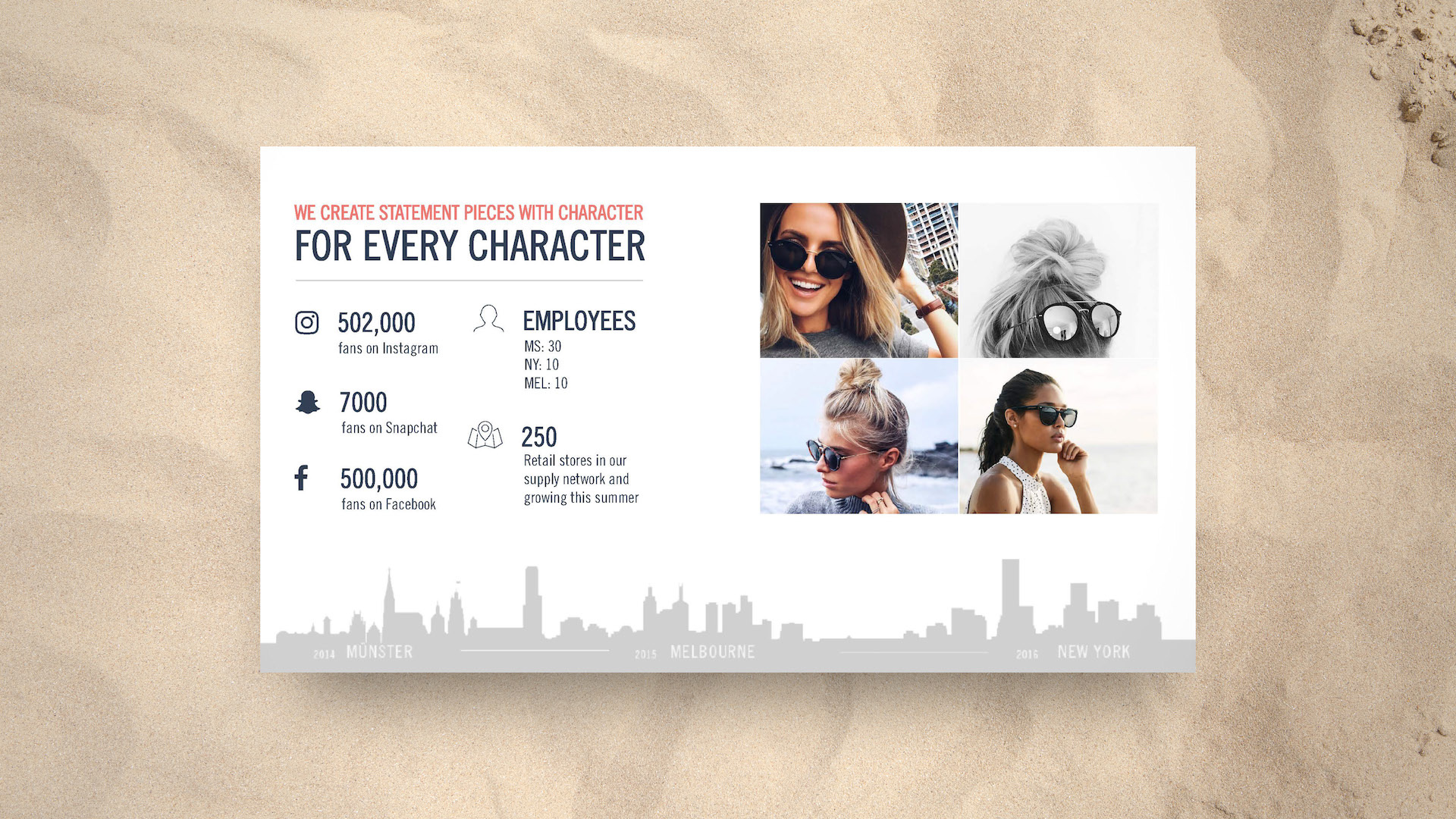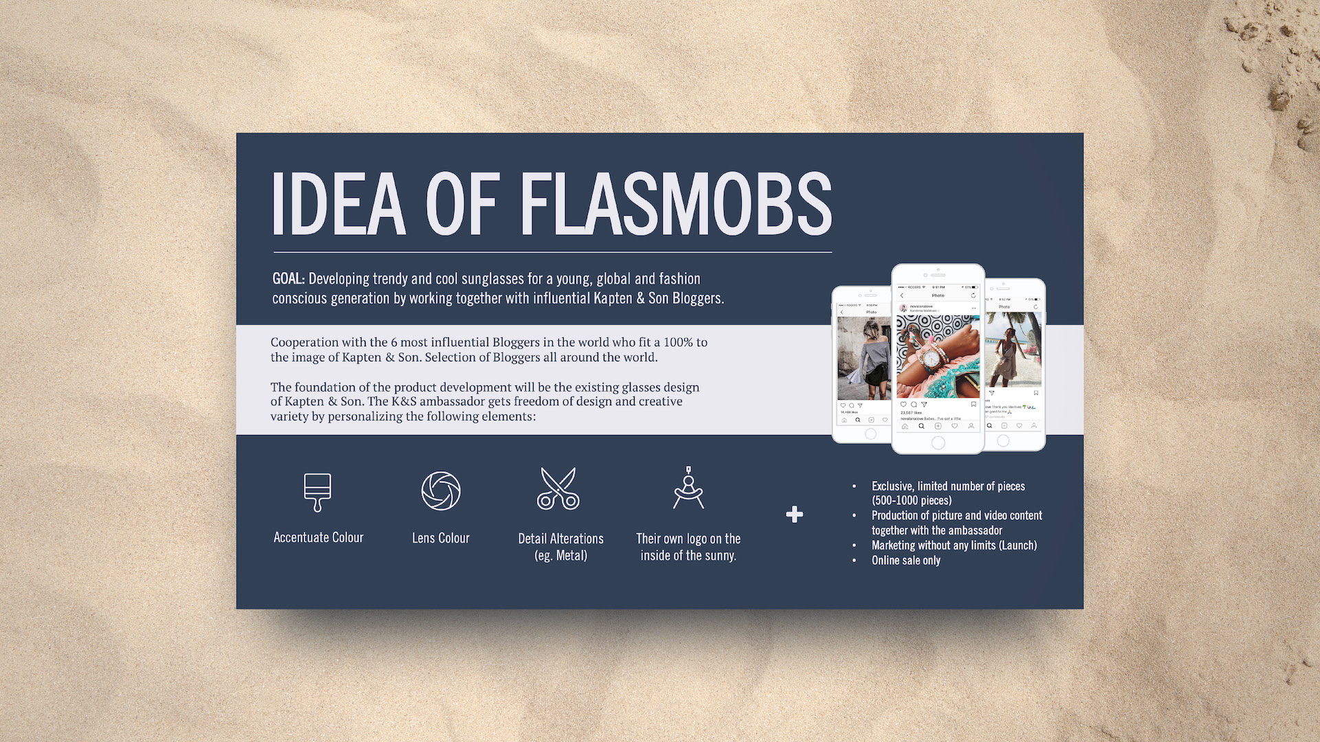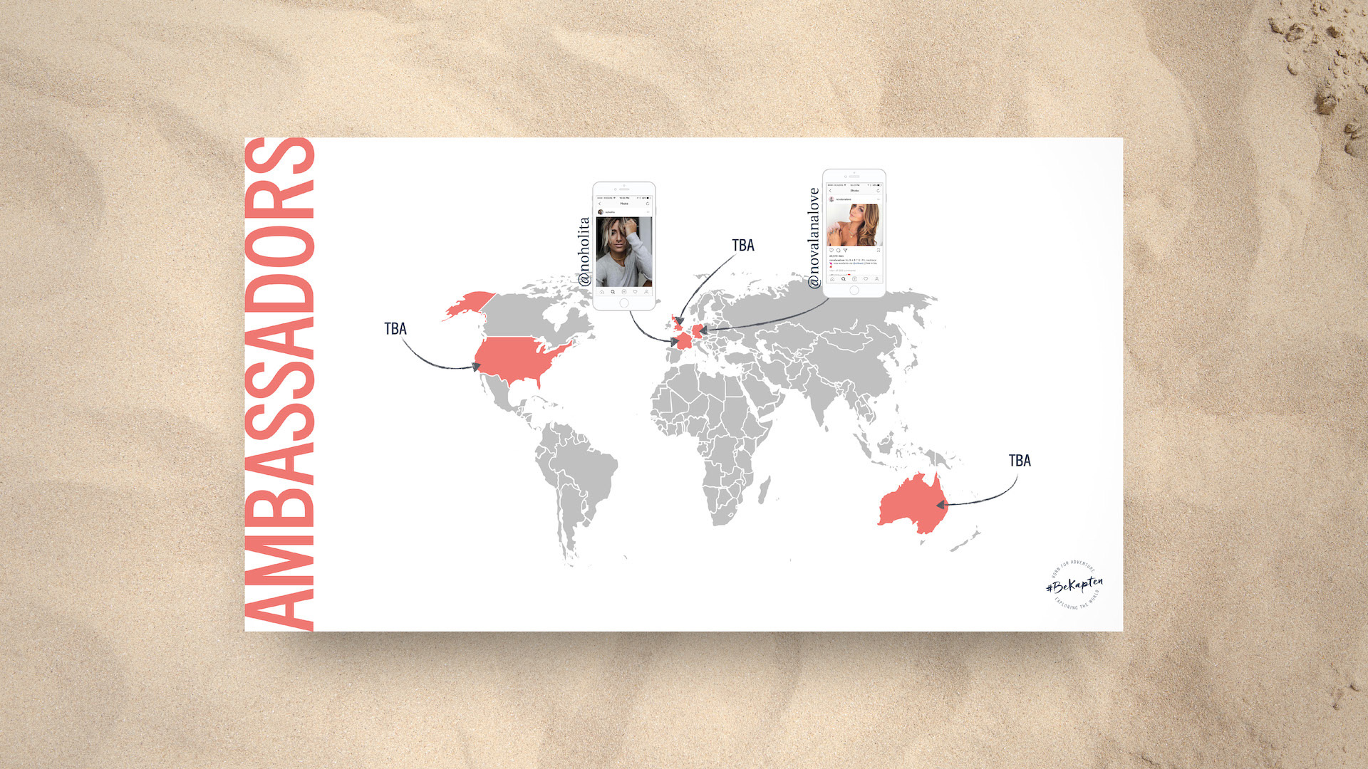 Kapten & Son already had a strong brand guide, so it made designing this series much easier. Throughout, I wanted to maintain a hint of nautical with a play between nautical blue overlays, and pearl white backdrops. I was also lifestyle photo-heavy, most of which are pieces from actual influencers wearing Kapten & Son products. I wanted influencers to see themselves in those photos, and I wanted them seeing the momentum already underway in the influencer community. Graphically, I laid out elements in a fun and engaging way, sometimes breaking rules and running large text off the slide. I also wanted to suggest a treasure map feel with dotted arrows between objects and maps that interacted with photos. Overall I'm pleased with how these turned out.