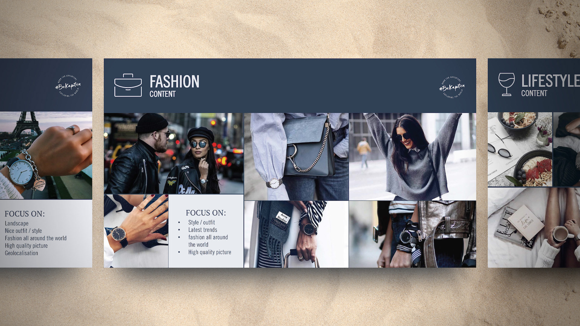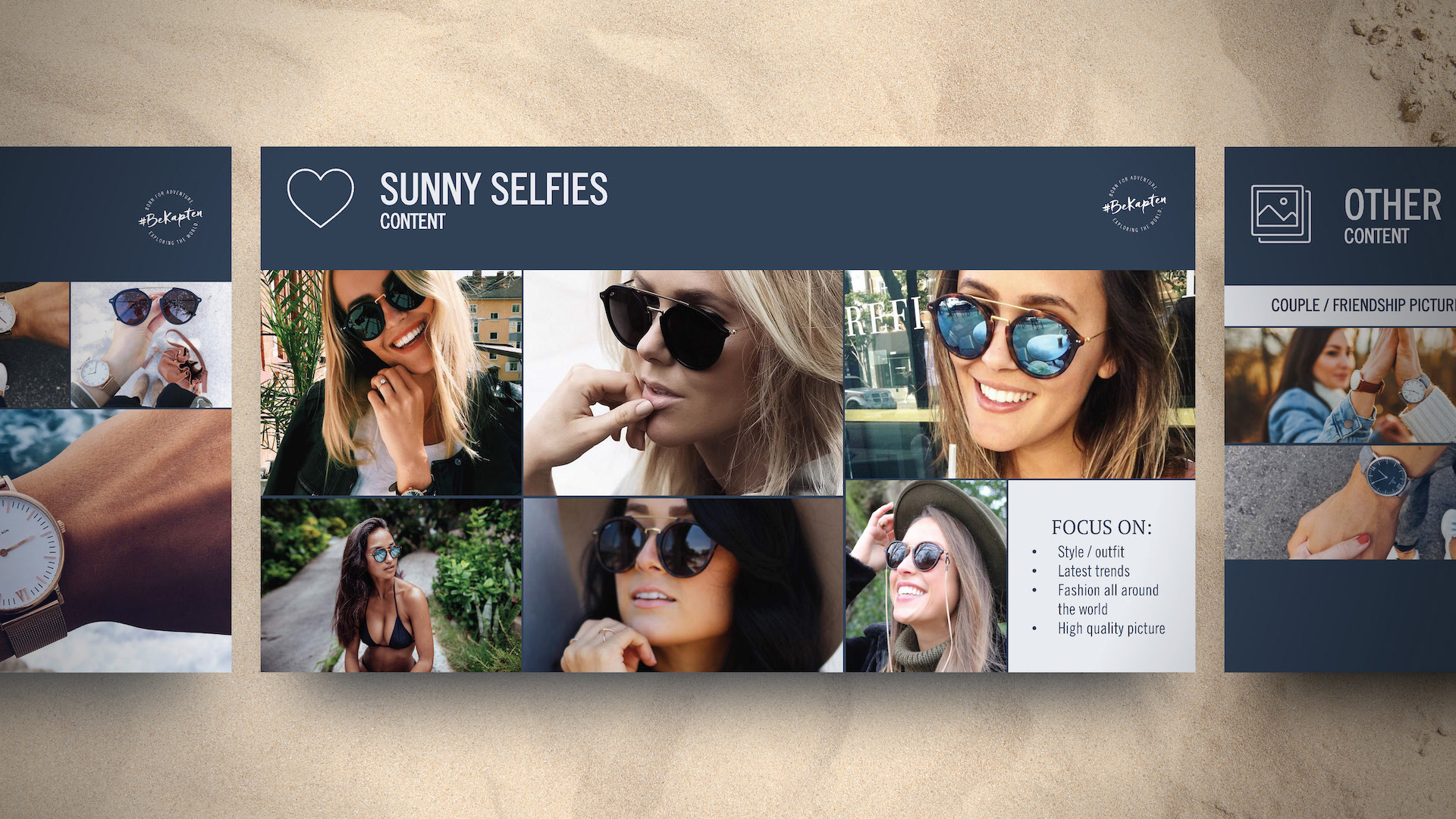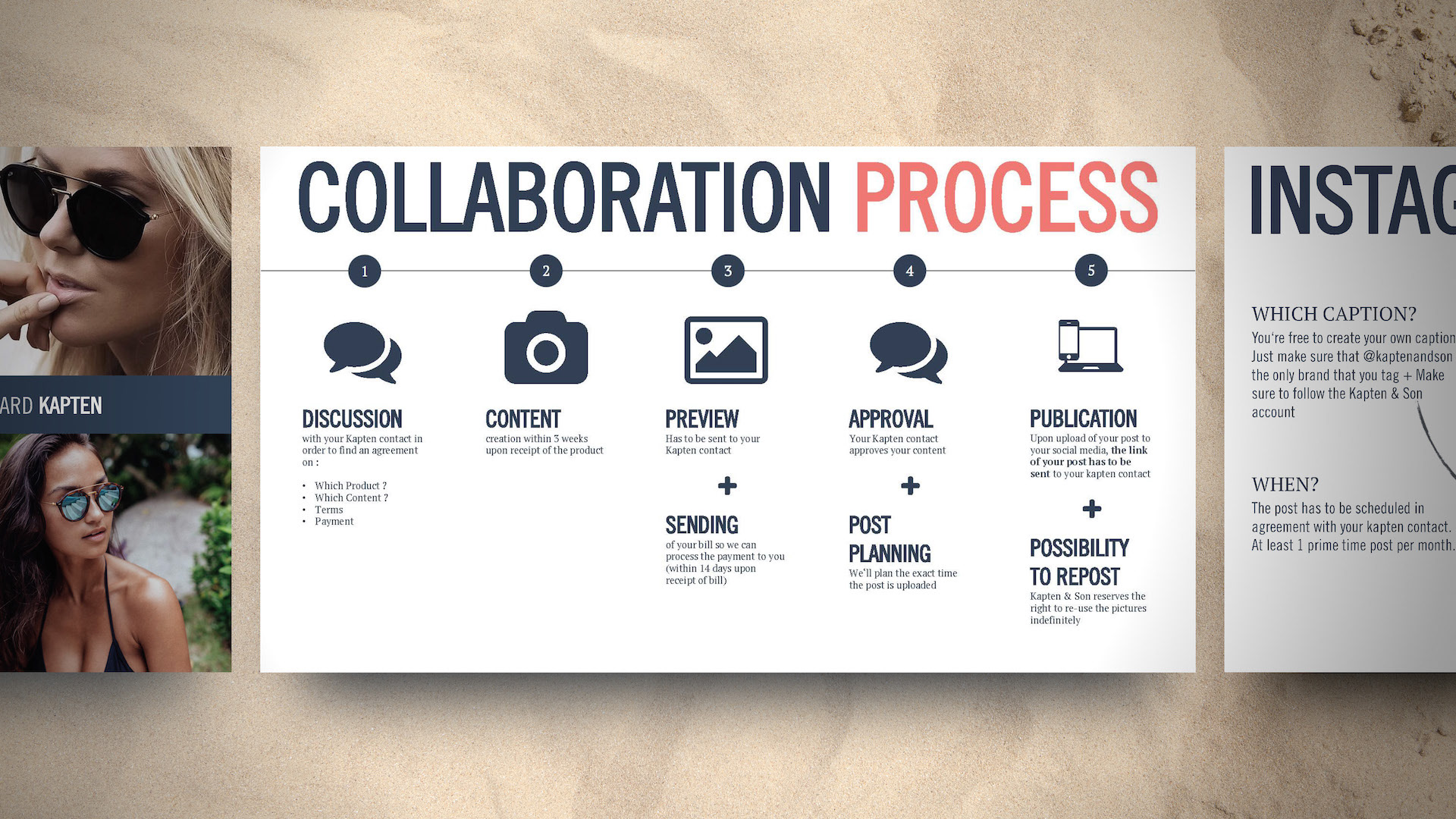 Kapten & Son already had a strong brand guide, so it made designing this series much easier. Throughout, I wanted to maintain a hint of nautical with a play between nautical blue overlays, and pearl white backdrops. I was also lifestyle photo-heavy, most of which are pieces from actual influencers wearing Kapten & Son products. I wanted influencers to see themselves in those photos, and I wanted them seeing the momentum already underway in the influencer community. Graphically, I laid out elements in a fun and engaging way, sometimes breaking rules and running large text off the slide. I also wanted to suggest a treasure map feel with dotted arrows between objects and maps that interacted with photos. Overall I'm pleased with how these turned out.